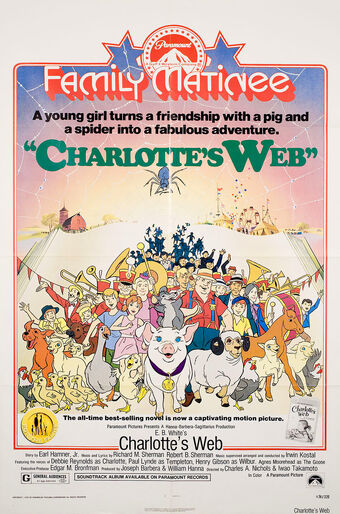 White produced by hanna barbera productions and distributed by paramount pictures the film like the book is about a pig named wilbur who befriends an intelligent spider named charlotte who saves him from being slaughtered. Six weeks later wilbur due to being a spring pig has matured and john tells fern that wilbur has to be sold. White s book charlotte s web its 1973 and 2006 film adaptions and the 2003 sequel to the former film adaption charlotte s web 2.